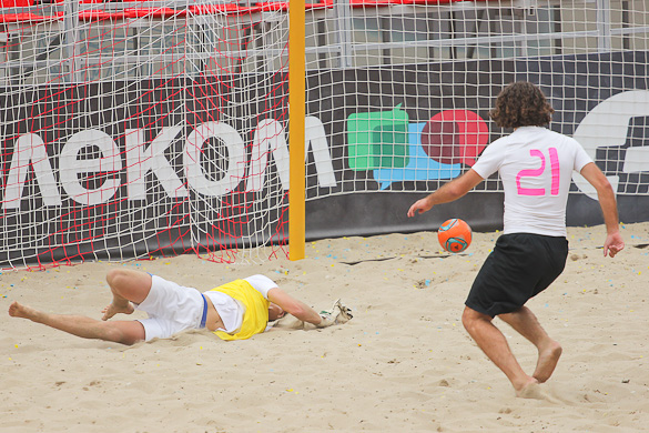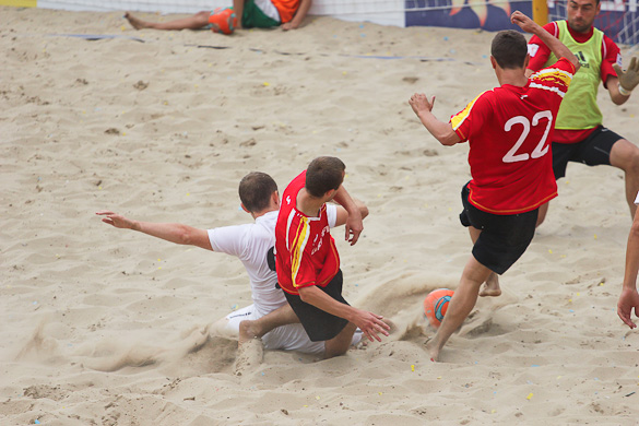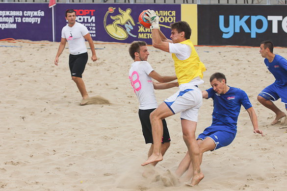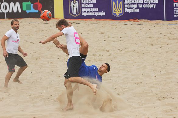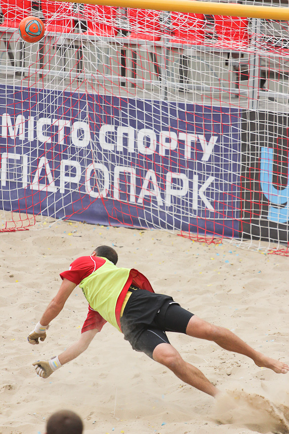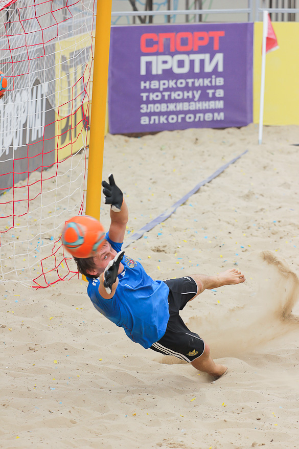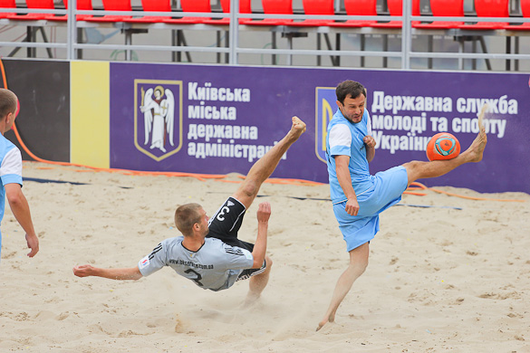 «Грифин» на второй тайм вышел еще более мотивированым, ведь видно было, что по игре они не уступают. Романовский на 17-й минуте сначала сокращает разрыв в счете, делая это прямым ударом со штрафного, а потом Шувалов забивает свой второй гол в этом матче и таким образом сравнивает счет. Не успели игроки «Гриффина» отпраздновать успех, как Шувалов без раздумий прямым ударом с углового забивает свой третий мяч. За 3 минуты с 1:3 до 4:3. Зрители на трибунах ни на секунду не отвлекались от матча, ведь знали, что могут пропустить гол и не один. В составе «Евроформата» на поле появился еще один «сборник» Евгений Рябчук и он сразу начал создавать опасность у ворот соперника. Сначала не подстроился под прострел Корнейчука и мяч срикошетил в аут, а затем, заработав штрафной, сам его и реализовал. Так команды со счетом 4:4 ушли на перерыв. Третий тайм начался с атак «Евроформата», но неожиданный удар игрока «Гриффина» Прокопца застал врасплох голкипера соперника – 5:4. «Евроформат» не стал форсировать события в матче, будучи уверенным, что они сравняют счет. Так оно и случилось. Сначала Андреев ударом практически от своих ворот с помощью рикошета от песка сравнивает счет, а затем Евгений Рак в пустые ворота с метра переправляет мяч в сетку. Счет 6:5 в пользу «Евроформата» и кажется сил у «Гриффина» уже нет на то чтоб отыграться. Однако за две минуты до окончания игры при розыгрыше углового защитника «Евроформата» не услидили за Магдой Александром и тот без помех переправил мяч в ворота, переведя игру в экстра-тайм. В дополнительной трёхминутке героем встречи также становится Магда. Удачно подкараулив рикошеты Александр с близкого расстояния протолкнул мяч в сетку ворот Гладченко - 7:6.
