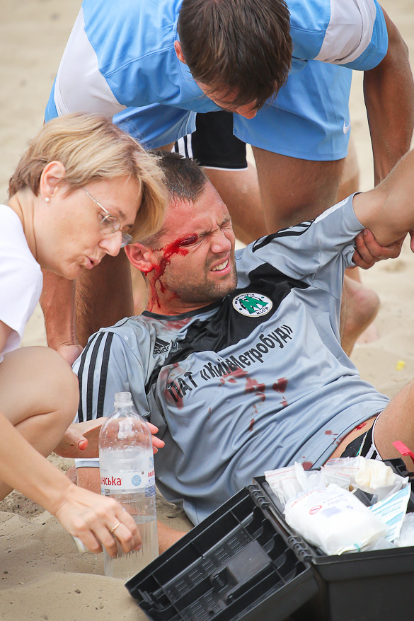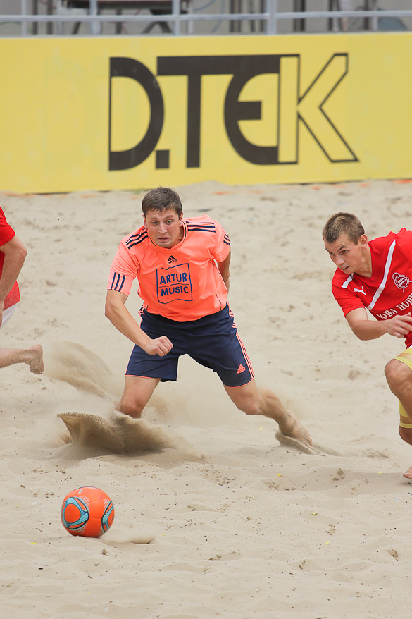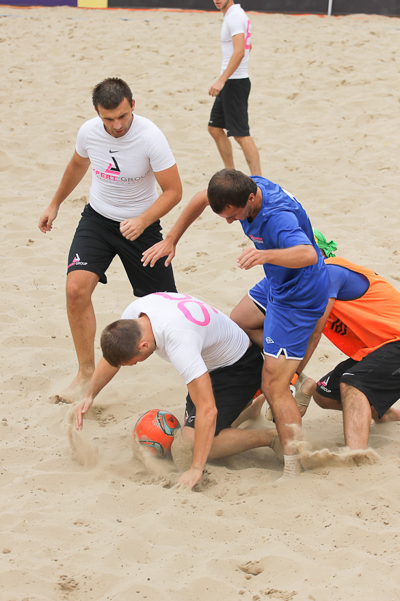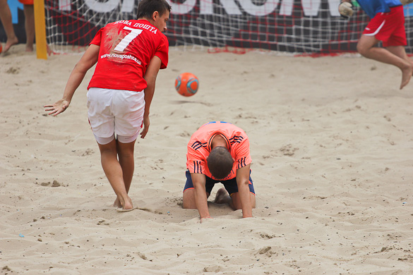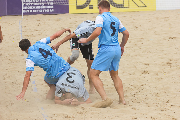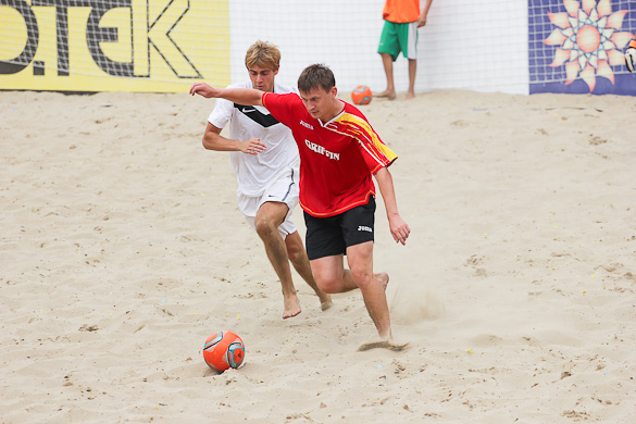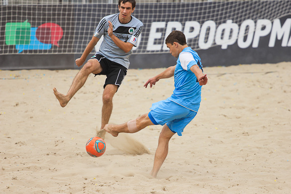 Голы в матче посыпались с первых минут. Сначала Корнейчук Александр на первой же минуте распечатал ворота команды «Гриффин», после чего сразу же, что характерно для пляжного футбола, с центра свой первый мяч в матче забил Шувалов Дмитрий. Вторая минута матча, а счет уже 1:1. Игра проходила в высоком темпе. Каждая атака завершалась ударом. Также и тактически очень грамотно играли команды. Шла 4-я минута матча и еще один «сборник» Андреев Константин нанес удар в дальний угол ворот метров с 10-ти и счет уже 2:1 в пользу «евроформатовцев». А после красивого гола Боженко Сергея, забившего дальним ударом с лета, на минутку показалось, что интрига в этом матче исчезнет. Не тут-то было.