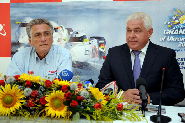 Переходим к главному. Официальным началом Гран-при можно считать пресс-конференцию, в которой приняли участие Президент компании Идеа Маркетинг, Генерального партнера Международного союза водно-моторного спорта Николы ди Сан Жермано, главы Киевобладминистрации Анатолия Присяжнюка, а также двух гонщиков из группы лидеров текущего мирового первенства, итальянца Алекса Кареллы, защищающего цвета команды «Qatar Team» и Филиппа Чаппи французского гонщика команды «CTIC China Team». В ходе пресс-конференции присутствующий в зале российский пилот Станислав Курценвоский пообещал Анатолию Присяжнюку подготовить украинского спортсмена для участия в гонках!