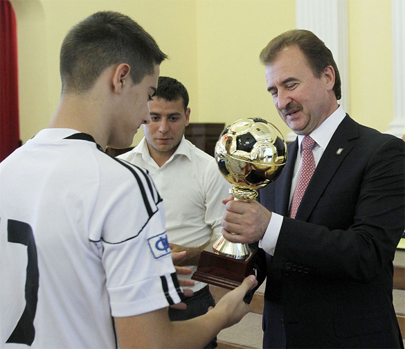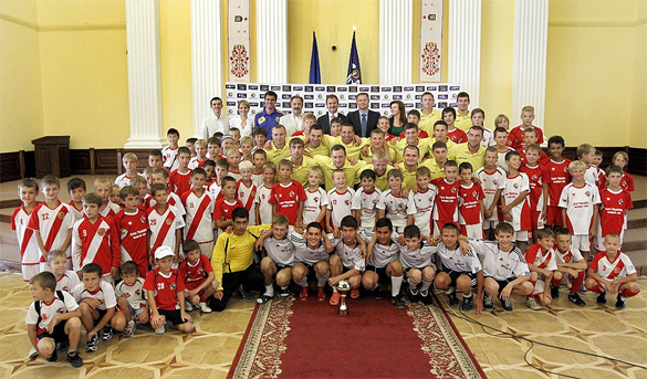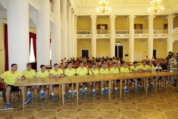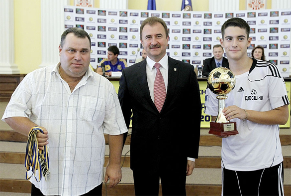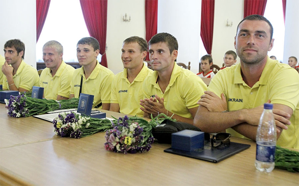 В киевской городской государственной администрации состоялась встреча руководства Киева, Государственной службы молодежи и спорта Украины, детских команд города с национальной сборной командой Украины по пляжному футболу, которая в отборочном европейском турнире в Москве 1-8 июля заняла почетное третье место. В очень теплой атмосфере в Колонном зале КГГА присутствующие имели возможность увидеть сначала видеофильм со всеми голами сборной Украины на последнем международном турнире: