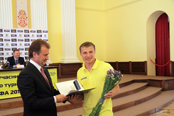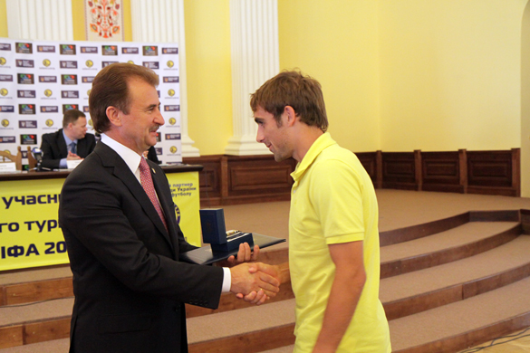 Затем каждому игроку сборной Украины были вручены почетные грамоты и именные часы от главы КГГА Александра Попова, наградили также и детскую команду ДЮСШ-10 за победу в Кубке Киева по пляжному футболу 2012.