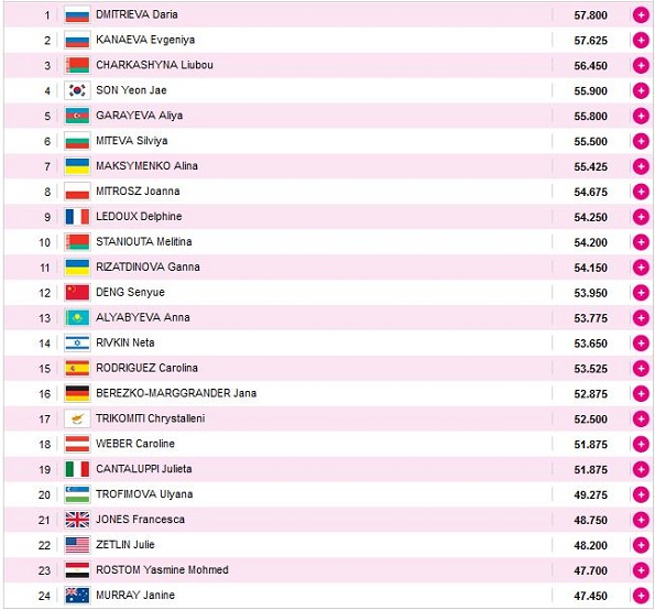 К сожалению, украинские гимнастки пока не радуют. На данный момент Алина Максименко занимает седьмое место, Анна Ризатдинова – одиннадцатое, группа - шестое.