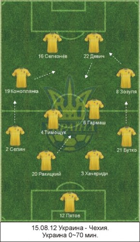 Если же взглянуть на вопрос с тактической стороны, то в плане игрового взаимодействия вопросы также возникали сразу. Как, например, можно сочетать по скорости действий вариант Селезнёв – Девич – Зозуля? Только в расчёте на склонность Девича к возне с мячом. Но это лишь один из вариантов действий Марко на поле, в остальных же случаях Селезнёв просто обречён на изоляцию или дежурство вблизи штрафной (совершенно не отрабатывая при этом в обороне). Так или иначе, присутствие Селезнёва ослабляет главное оружие сборной Украины в нападении – быстрые контратаки.