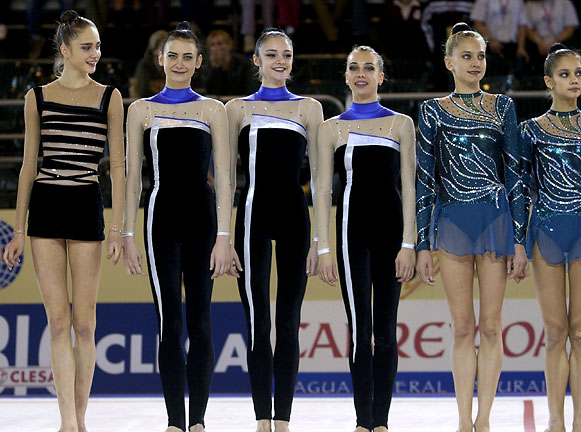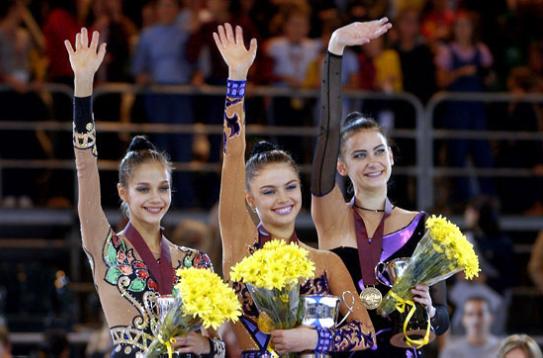 Слева направо: Ирина Чащина (серебро), Алина Кабаева (золото), Тамара Ерофеева (бронза).