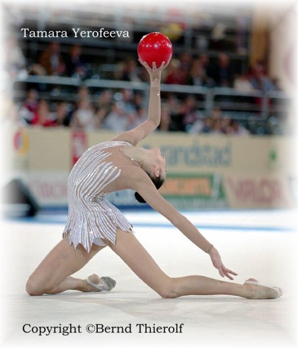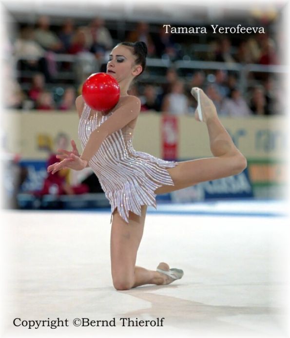 Тамара Ерофеева была лидером команды. Гимнастка имела опыт выступления на Олимпиаде (шестое место), являлась двукратным бронзовым призером чемпионата мира -1999 (мяч, командное первенство). Тамара также была призером международных соревнований в групповых упражнениях. На ковре ее отличал драматический стиль. В Мадриде в многоборье Ерофеева шла четвертой, но на последнем виде буквально вырвала «бронзу» у Симоны Пейчевой, обойдя соперницу всего на 0.075 балла. Кстати, Тамара Ерофеева первой выполнила знаменитый смешанный поворот аттитюд + кольцо.