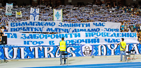 Великий резонанс у ЗМІ та серед уболівальників отримав банер, що з'явився на трибуні ультрас «Динамо» Київ на початку другого тайму матчу «Динамо» - «Карпати» в п'ятницю, 14 вересня. Текстовик з вимогою змінити час початку матчу «Динамо» - «Зоря», а також заборонити проведення матчів в робочі дні, який вивісили найбільш активні й віддані своєму клубу вболівальники, в черговий раз звернув увагу на одну з проблем українського футболу, а саме - зневага клубами, Прем'єр-лігою, телетранслятором інтересами власне уболівальників на стадіоні та біля екранів телевізорів.