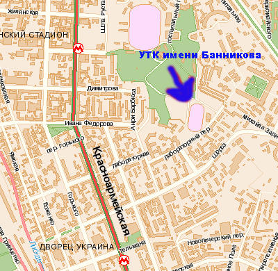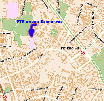 Поэтому предоставляем вам фрагменты карты, с помощью которых вам будет легче сориентироваться и таки попасть на УТК имени Банникова. Отметим, что удобнее всего добираться от станций метро Печерская или же Дворец Украина.