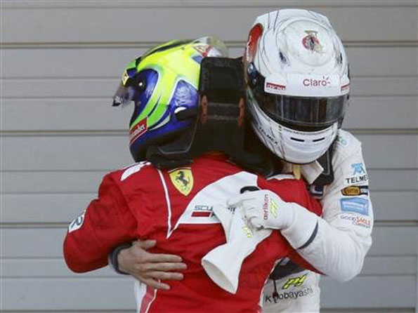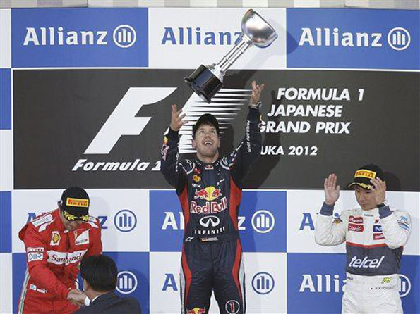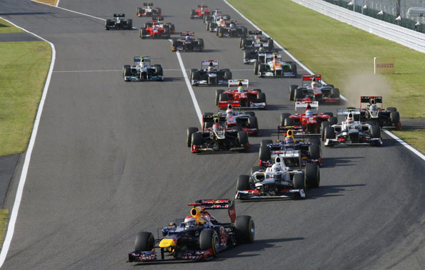 За аналогією з гонкою в Спа японський етап сміливо можна розділити на дві частини – до першого повороту і після другого. Якщо в першій половині Феттель виглядав фаворитом гонки, який повинен був максимально скоротити відставання в чемпіонаті від Алонсо, а перед іспанцем стояло завдання мінімізувати очевидні втрати – настільки очевидним була в Японії перевага Себастіана і Red Bull в цілому. То вже в другій частині німцю нічого не залишалося як акуратно довести гонку до переможного фінішу – на щастя для чемпіона реальних конкурентів у гонці в нього просто не було (тут варто подякувати напарнику за затримку на старті і Грожану, який жорстоко покарав Марка за таку «легковажність»).