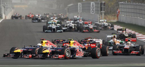 Зрештою коли червоні вогні світлофорів згасли для Хельмута Марка і всієї про-Феттелівської частини Red Bull настало велике полегшення – Марк традиційно для себе стартував трошки повільніше ніж його напарник і в перший-другий повороти по внутрішньому радіусу протиснувся саме Себастіан. Спроба Веббера контратакувати на довгій прямій успіхом не увінчалася й австралієць залишився другим. В цей самий час Алонсо у схожому з Феттелем стилі зумів випередити Хемілтона, піднявшись на третє місце.