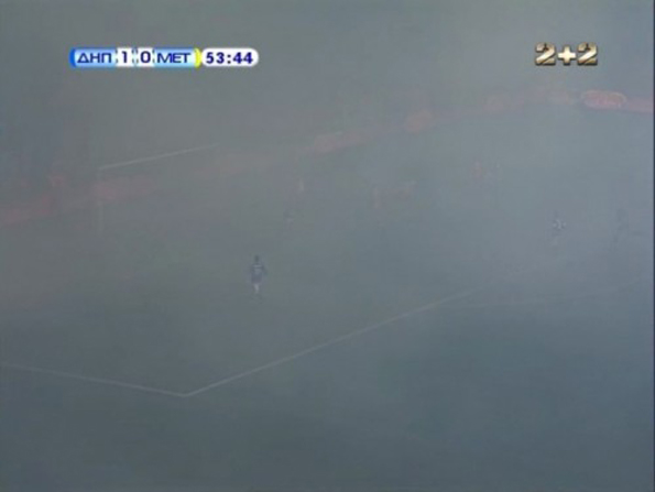 На 55-й минуте матча Жабченко вынужден остановить игру вследствие значительной задымленности поля. Регламент определяет допустимые паузы в случаях, аналогичных данному, длительностью до 30 минут.