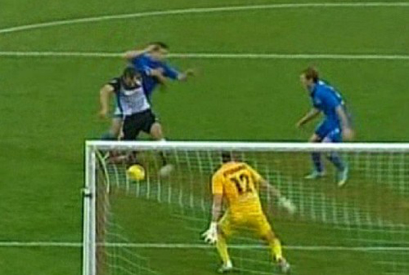 23 минута, после подачи соперника №86 «Металлиста» Виллиан Гомес касается мяча рукой, находясь в пределах собственной штрафной.