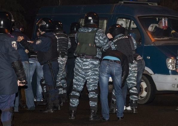 К стадиону ребята прибыли за 15 минут до начала матча. Перед входом стояла стена из сотрудников «Беркута» в пять рядов. Как уверяют харьковчане, на стадион сотрудники «Беркута» пропускали по одному человеку, при этом в приказном порядке и в грубой форме обыскивали, а некоторых даже заставляли снимать обувь, девушкам залезали руками под нижнее белье.
