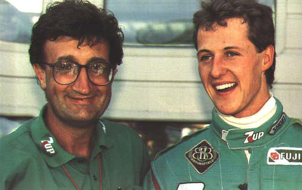 В автоспорті мало бути швидким і талановитим або не таким швидким, але багатим, щоб тебе помітили й запросили піднятися на наступний щабель кар’єрних сходів, інколи треба потрапити на очі правильній людині або щоб просто сталася подія, через яку в твоїх послугах можуть бути зацікавлені. На початку кар’єри молодий Шумахер кілька разів зривав джек-пот: спочатку його запримітив Віллі «20%» Вебер і став особистим менеджером, потім з Бертраном Гашо сталася відома історія, яка дозволила Міхаелю дебютувати в Спа у складі Jordan. Взагалі перший Гран-Прі Шумахера, а точніше обставини його організації – історія достойна окремої голлівудської постановки, режисером якої неодмінно має стати Гай Річі: бійка з таксистом в Лондоні із застосуванням хлорбензальмалондінітрілу, 150 тисяч фунтів на рахунок Team Jordan і прониклива розповідь Вебера про свого підопічного, який відмінно знає трасу, бо живе хоч і в Німеччині, але ж зовсім неподалік (уже значно пізніше відомою стане правда про те, що саме за кермом зеленої машини Едді Джордана Шумахер проїхав перші кола легендарним бельгійським кільцем). Далі не менш важливу роль на всій кар’єрі німця відіграв перехід в Benetton до «продавця джинсів» Флавіо Бріаторе, який швидко зметикував, що Міхаеля треба переманити, бо з нього може вийти майбутній чемпіон. Перехід, який сам Джордан неодноразово називав крадіжкою зі зламом.