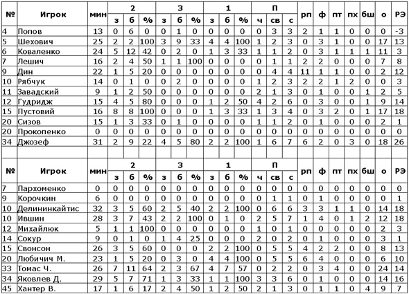 БК Киев на домашнем паркете довольно предсказуемо потерпел поражение от «Кривбассбаскета». Гостям столицы уже в первые минуты удалось обозначить собственное превосходство над соперником. Три дальних от Флоренса мгновенно вывели криворожцев вперед – 1:9. Киев же выглядел абсолютно беспомощным в атаке, при этом полностью проигрывая щит. Гости продолжали уверенно штамповать результативные атаки, завершив первую десятиминутку трешкой все того же Флоренса – 9:20. Второй период прошел в равном борьбе, Гудс и Робинсон пытались вывести киевлян из ступора, в который команда успела впасть еще на старте поединка, но усилия были тщетны. Фрезьер и Крстанович по-прежнему сохраняли для «Кривбассбаскета» комфортную разницу. Все вопросы о победителе в этом матче были сняты после большого перерыва. Гости вновь принялись разрывать оборонные редуты «волков» пополняя копилку набранных очков. Рывок 4:19, в котором поучаствовало трио Флоренс-Фрезьер-Крстанович, окончательно снял все вопросы о результате матча. Более чем уверенные +29 гарантировали гостям успех задолго до финальной сирены. Все на что были способны подопечные Паскуали, так это немного сократить отставание, завершив встречу со счетом 59:80.