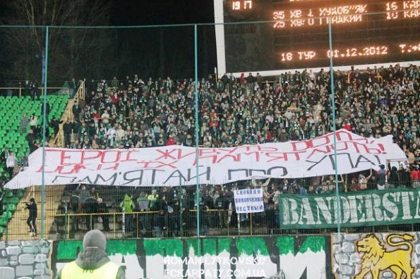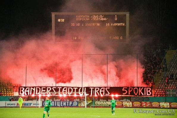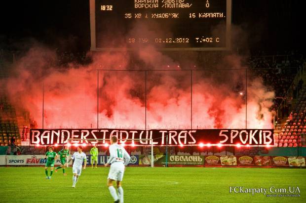 Группировка ультрас львовских «Карпат», которая носит имя «Бандерштадт», во время матча своего клуба против полтавской «Ворсклы» отметила свой 5-й день рождения.