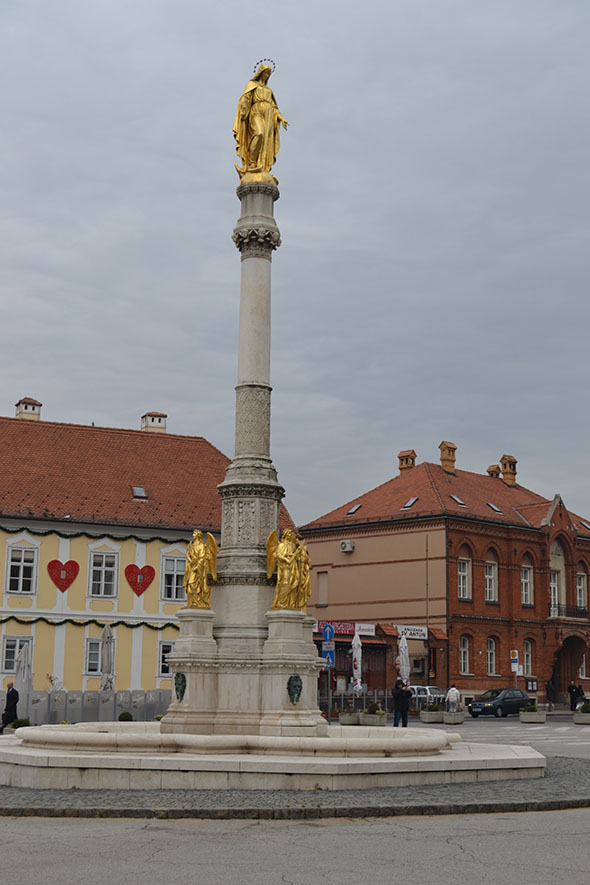 Фонтан с изображением Девы Марии и четырех ангелов на площади перед собором.