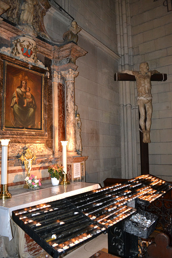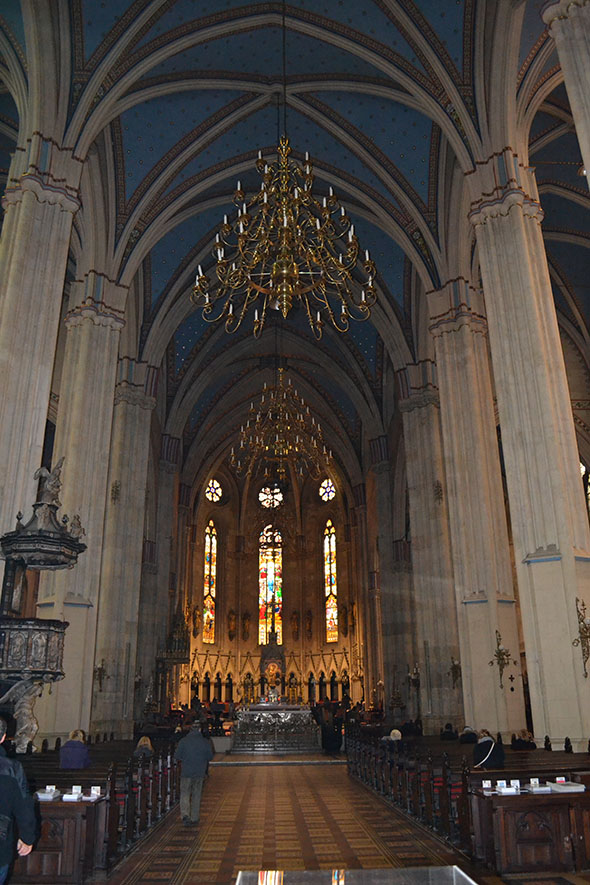 В это время года в соборе особенно много народу. Перед Рождеством католики обязательно должны исповедоваться, потому к исповедальне стоят очереди. Есть у собора и пикантная история. Наш гид назвала ее полуправдой – но все же. Лампы на собор кто-то прислал из … Лас Вегаса и куплены они на доход одного из казино. Священники долго не решались оставить подарок, но поскольку испытывали финансовые трудности, то все же закрыли глаза на то, что доставлены лампы из столь «развратного места», и теперь они радуют глаз посетителей.