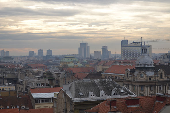 С обзорной площадки видно, что Загреб разделен на секторы, за историческим центром следует жилой сектор. Все те же многоэтажки. Но вид на город от этого не становится менее красивым.