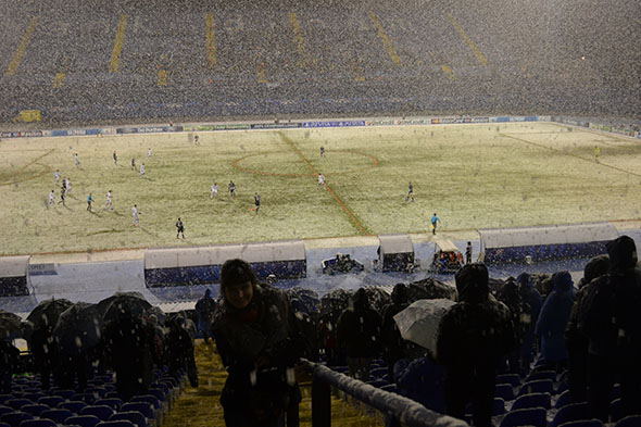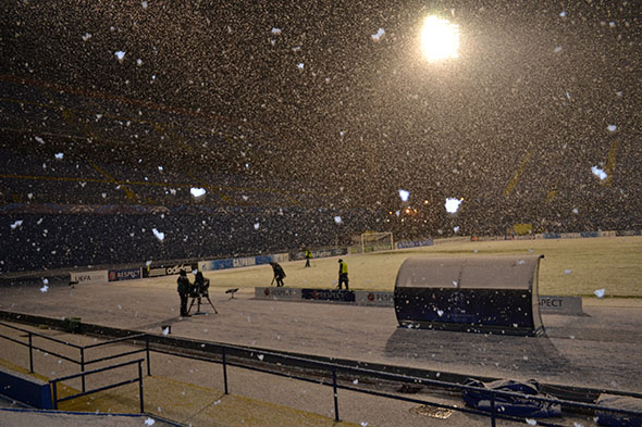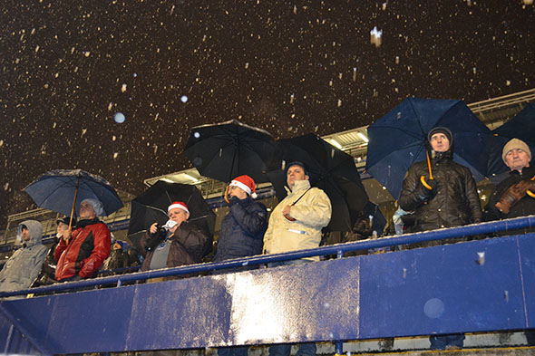Как по мне, Загреб – довольно комфортный город для жизни. Единственное, что все же несколько испортило впечатление от поездки – погода. Уже с обеда 4 декабря стал моросить дождь, который со временем увеличился. А уж ближе к матчу и вовсе пошел снег. Красивый такой, пушистый. И я бы ему абсолютно точно обрадовалась, если бы он не покрывал трибуны стадиона «Максимир». О том, что происходило на дальней бровке в начале матча, многие могли лишь догадываться.