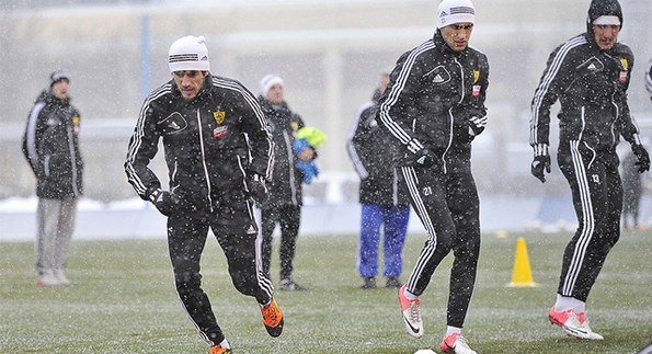 Махачкалинский клуб провел предматчевую тренировку в заснеженном Санкт-Петербурге