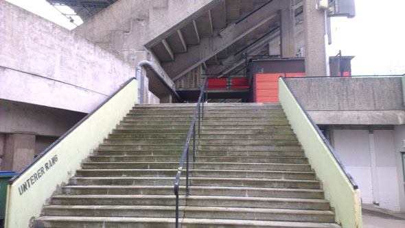 С более знаменитым венским стадионом «Эрнст Хаппель» (который тоже язык не повернется назвать выдающейся футбольной конструкцией) сравнивать и не стоит. Переименованная в 1980-м году в честь легендарного футболиста «Рапида», ставшего ее архитектором, арена «Герхард Ханаппи» - второй по вместительности стадион Вены. Сооружение унылое и серое. Что турникеты, что ларек с билетной кассой способны окунуть в пучины депрессии и самого жизнелюбивого удальца.