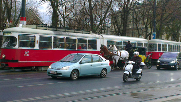 Но не одними лишь макетами богата Вена! По главной дороге-артерии центра города Рингштрассе (или как ее порой называют, «поясу Вены») то и дело неторопливо снуют кареты, прекрасно уживающиеся, как с автомобилями – порождениями современного технического прогресса, так и с милыми уютными трамвайчиками.