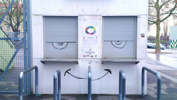 Городской этюд «Безнадега». Коварно склабящийся ларек с подписью «сукины дети». Выхода нет.