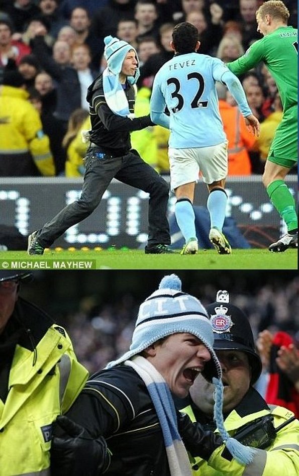 В концовке поединка «Манчестер Сити» - «Манчестер Юнайтед» случилось сразу несколько инцидентов. Сначала монетой в глаз попали защитнику «красных дьяволов» Рио Фердинанду, а затем на поле выбежал болельщик «горожан», попытавшийся что-то рассказать все тому же Фердинанду. От гнева Рио фана спас голкипер Джо Харт. Как позже выяснилось, болельщик и впрямь очень похож на футболиста лондонского «Арсенала», а потому его быстро окрестили «Аршавиным». В самом деле сходство имеет место быть.