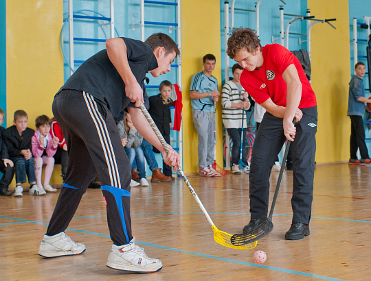 Після кількох офіційних хвилин розпочалося найцікавіше. Спочатку на майданчику точилася справжня баскетбольна боротьба, напруга зростала не на жарт. Але, як то ведеться, під час таких матчів завжди перемагає дружба. Після баскетболу діти запропонували гостям спробувати свої сили в новому виді спорту - флорболі. Для вихованців інтернату ця гра не нова, а от «ураганівців» довелося вводити в курс справи. Короткий інструктаж і матч розпочався! Швидкість, енергійність, кмітливість, точність та влучність - це, і не тільки, спостерігалося на майданчику. У підсумку море задоволення отримали і вболівальники, і гравці. Так діти давно не веселилися.