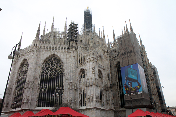 Здесь хотелось бы сделать небольшое лирическое отступление и отдельно рассказать о впечатлениях от самого города. Центр Милана - это, прежде всего, кафедральный собор Дуомо, который находится на одноименной площади. Дуомо – это впечатляющее здание в готическом стиле, построенное из белого мрамора.