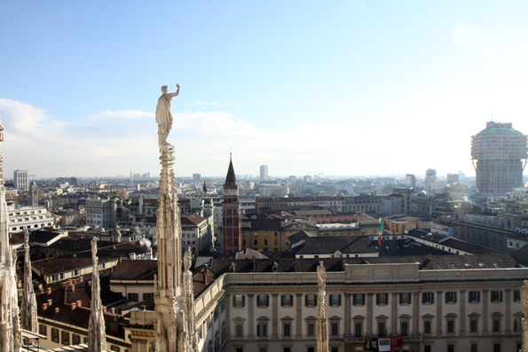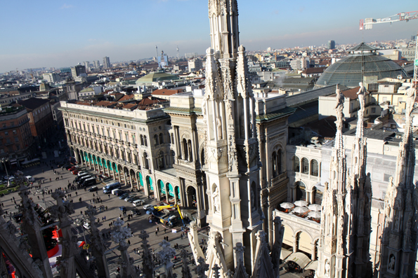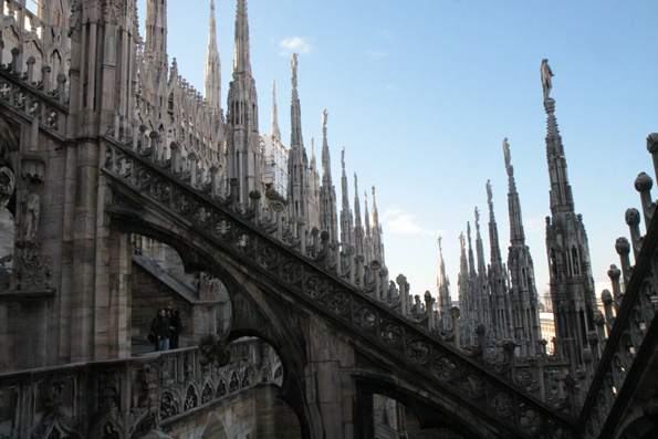 С крыши Дуомо можно осмотреть центр Милана, сделать парочку снимков на память, рассмотреть вблизи готические колоны и многочисленные фигуры, которые размещены на стенах собора. Некоторые их них очень причудливы, замысловаты и выполняют функцию водостоков.