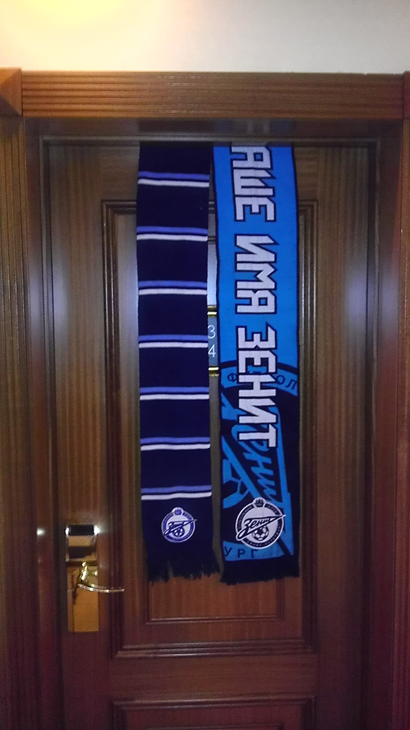 Не нужно обладать дедуктивным мышлением Шерлока Холмса, чтобы догадаться, кто поселился в этом номере отеля. Надо сказать, что поддержать «Зенит» приехали не только питерцы, но и жители других областей России.
