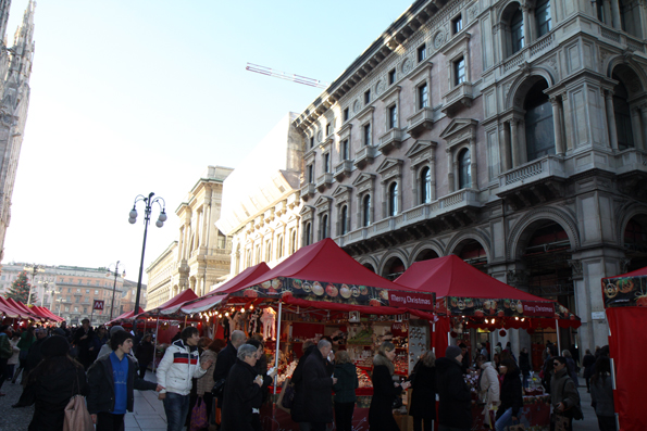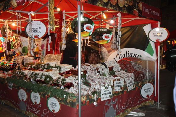 У подножия Дуомо оборудован своеобразный тематический рынок под Рождественские праздники. В торговых палатках представлен богатый выбор местной сырной и колбасной продукции.