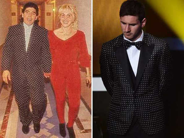 Еще будучи игроком «Наполи», моду на костюмы в горошек для футболистов ввел соотечественник Месси Диего Армандо Марадона. Наверное, именно этот человек стал модельером Месси накануне вручения самой престижного индивидуального трофея.
