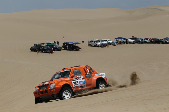 Главное отличие сегодняшнего дня – это абсолютно разные маршруты для байков\квадов и авто\грузовиков. Мотоциклы стартовали уже на спецучастке, а автомобили ехали через лиазон длиной почти в 300 км, а только после стартовали на относительно коротком 170-километровом СУ. Главный момент – экипажи стартовали в Перу, а финишировали уже на территории Чили.