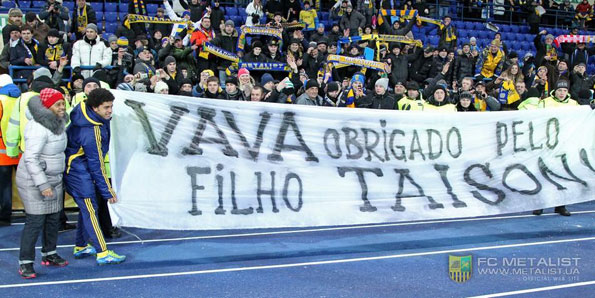 А как любили Тайсона харьковские болельщики! В конце февраля 2012 года, когда «Металлист» в 1/16 Лиги Европы дома разгромил «Зальцбург» со счетом 4:0, на игре присутствовала мама бразильского футболиста. Зная об этом, фанаты «Металлиста» приготовили для нее специальный баннер со словами «Vava obrigado pelo filho Taison!», что в переводе на русский означало: «Вава (так зовут маму Тайсона), спасибо Вам за сына!» Тайсон стал в Харькове своим. И ему легко прощали и излишнюю эмоциональность, и нереализованные моменты… Когда мяч подхватывал этот бразильский вихрь, целый город задерживал дыхание. Потому что ждал от бразильского кудесника мяча очередного чуда – сумасшедшего дальнего удара, великолепной передачи или обыгрыша на скорости половины команды соперника…