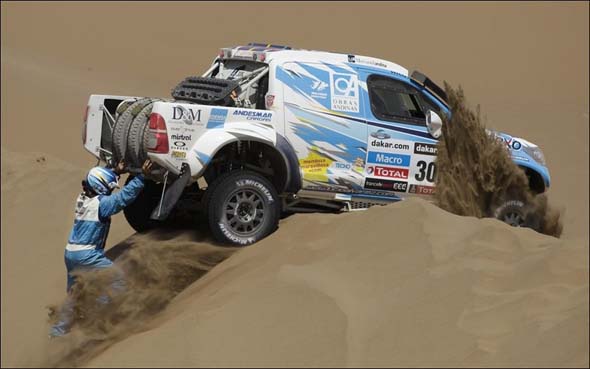 Когда в конце ноября на презентации «Дакара» в Париже мы не увидели Гордона, было немного как-то грустно. С одной стороны, будет меньше скандалов, а с другой – а как же без Гордона? Ведь кто-то должен показывать чудеса, пусть и местами это абсолютно не нужно – но Робби задает жару! И в этот раз он показал себя как настоящий мужик. Стартовав во второй день «из глубины», он к концу дня был 13-м, а на второй день – 2-м. Вот только увлекся. Нельзя, никак нельзя тянуться за Аль-Аттией, он привык к песку настолько, что тут с ним лучше не бороться, надо просто ждать его ошибки. Но разве Гордон будет что-то выжидать? Это будет не он.. ОН полез атаковать, за что и поплатился. И даже после этого он продолжает атаковать и показывать время в ТОП-3. Браво, Робби!