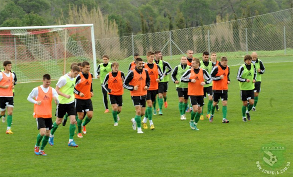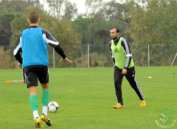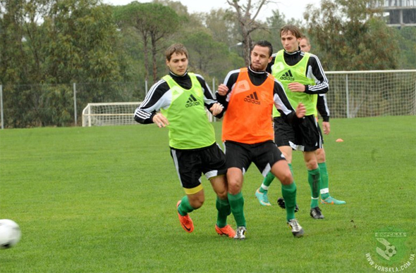 В понедельник тренировка «Ворсклы» проходила под дождем, который, то становился меньше, то усиливался. Несмотря на неблагоприятную погоду, ворскляне отработали в полную силу почти два часа. Тренерский штаб Сергея Свистуна основной акцент занятия сделал на ударах по воротам. Футболисты разыгрывали различные комбинации, пробивая в конце, били и с места, и с разбега, и с ходу. Все эти удары выполнялись с разных позиций.