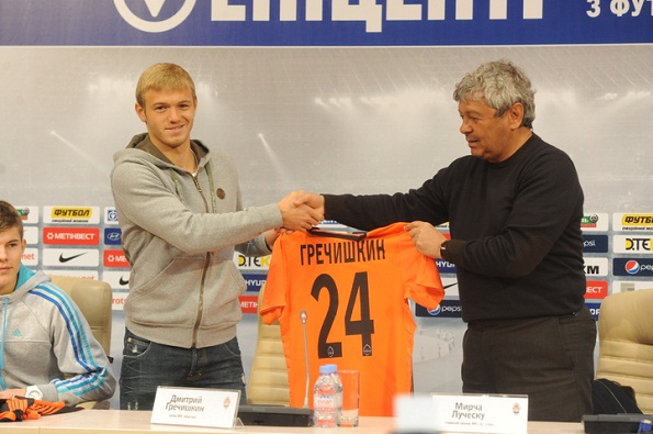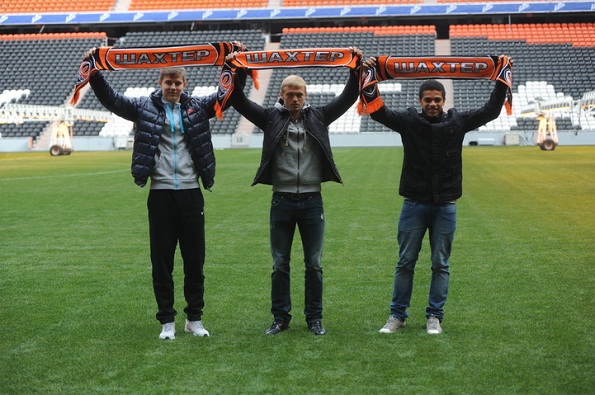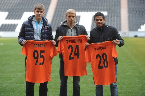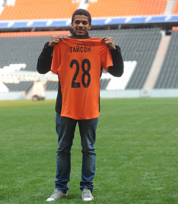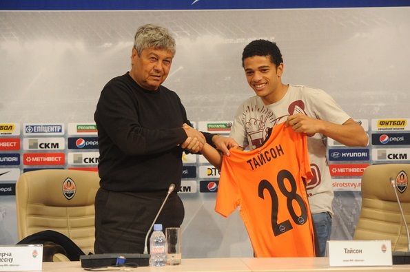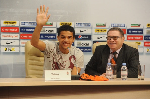 Нужно отметить ажиотаж, который вызвало мероприятие, – конференц-зал был переполнен болельщиками и журналистами. Они впервые увидели в сборе такую компанию: Тайсон, Дмитрий Гречишкин и Эдуард Соболь. Футболки новобранцам лично вручал главный тренер «горняков» Мирча Луческу. Тайсон будет играть в составе «Шахтера» под номером 28, Гречишкин – 24, Соболь – 95.