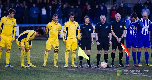 Хозяева начали резво, и уже на 12-ой минуте счет был открыт. Причем гол был забит в чисто английской манере, после подачи углового Скроггинсу удалось протолкнуть мяч в сетку. «Металлист» быстро отыгрался – уже на 18-ой минуте Марлос точным ударом восстановил статус-кво.