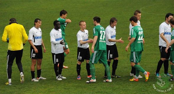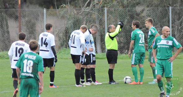 Голы: Кривошеенко ( 29 ) , Баранник ( 75 ) , - Гомза (58 ) , Каршакевич ( 77 ) .