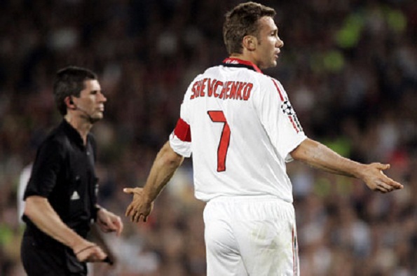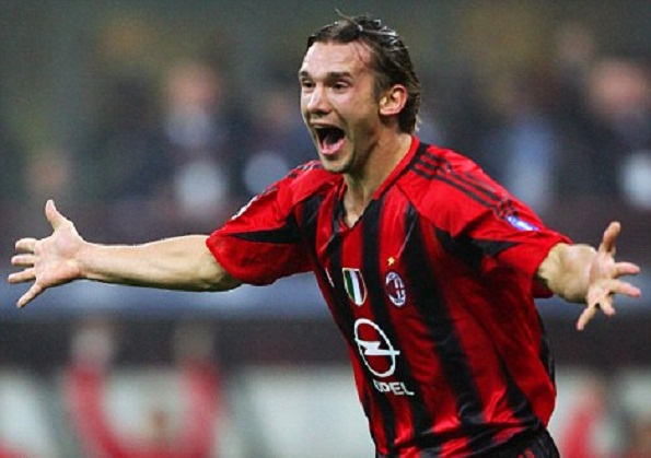 Андрей Шевченко празднует гол в ворота «Барселоны»