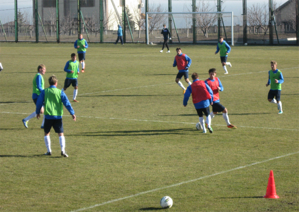 Игроки были разбиты на 2 команды по 12 человек. Перед началом тренировки ребята и тренерский штаб поздравили Богдана Бутко с покупкой машины. Как признался сам Богдан его любимый автомобиль – «Bentley».