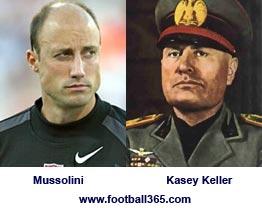 Не очень-то любят англичане, похоже, американских вратарей Келлера и Фридэля. Брэд уличен в несомненном сходстве с Хэллбоем, ну а Кейси дослужился до самого Бенито Муссолини.