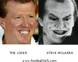 А вот несомненная удача авторов – Стив Макларен и Джокер в исполнении Джека Николсона. Чувствуется любовь изготовителей сего шаржа к тренеру, под чьим руководством сборная Англии показывает столь содержательный футбол. Сэму Эллардайсутоже не очень-то повезло.