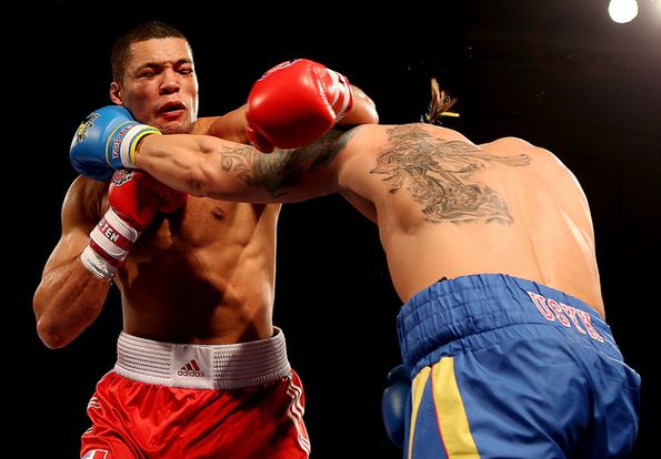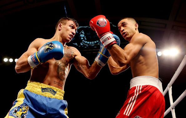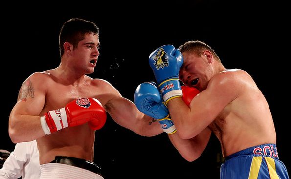 Дмитрий Митрофанов без раскачки сходу принялся обрабатывать увесистыми ударами своего соперника. На лице Фредди Эванса очень скоро появились следы от этого. Каждый точный удар Дмитрия сопровождался таким оглушительным ревом трибун, что казалось, будто бой проходит в Киеве. Еще больше усиливали это впечатления скандирование разодетых в казацкую одежду множества наших болельщиков из диаспоры. Не победить при такой поддержке было не возможно. Первый нокдаун у британца случился в конце второго раунда. В третьем последовало еще два. Оставалось около минуты к спасительному гонгу. Эванс выплевывал капу, но его это не спасло. После очередного града ударов рефери остановил бой – победа Митрофанова техническим нокаутом.