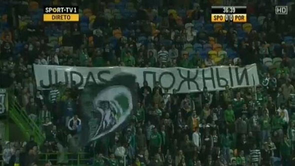 Одно слово фанаты написали на родном языке – «Иуда», второе – на русском. Как рассказали ультрас «Спортинга», под словом «ложный» они подразумевали лицемерный и лживый.