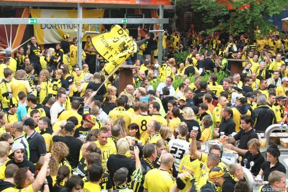 К любому матчу «боруссцев» фаны команды начинают готовиться в близлежащем к стадиону баре Strobels. Выбор пива здесь на удивление мал – два вида светлого, одно темное. Цены на пиво по меркам Германии довольно высокие. Ассортимент еды также прост. Но какая такая изысканность, скажите на милость, нужна футбольному болельщику накануне матча его любимой команды? Важна атмосфера!