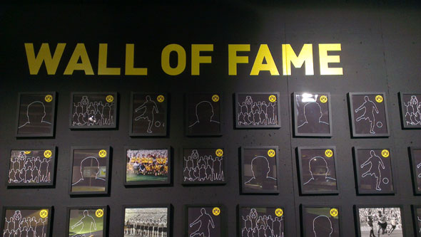 Любопытная деталь. Пробелы в Зале Славы. Это места для будущих героев и звезд. Вскоре их обязательно займут нынешние игроки и тренеры «Боруссии».
