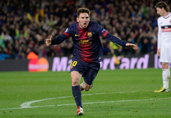Итальянская пресса абсолютно угадала состав «Милана» на ответную игру. В составе не оказалось Паццини и Мунтари, первый получил травму в матче против «Дженоа», а второй оказался на скамейке запасных. У «Барселоны» с первых минут появился Давид Вилья, а место в центре обороны занял Маскерано, заменивший Пуйоля. Всем было понятно, что уже с первых минут «Барселона» бросится в бой, и уже на пятой минуте «блаугранас» забили первый гол. Бускетс начал голевую комбинацию, сделав точный пас на Месси, тот обыгрался с Хави и изящно пробил в левый верхний угол ворот. Аббьяти в данной ситуации даже не дёрнулся с места.